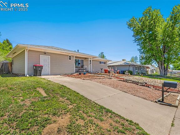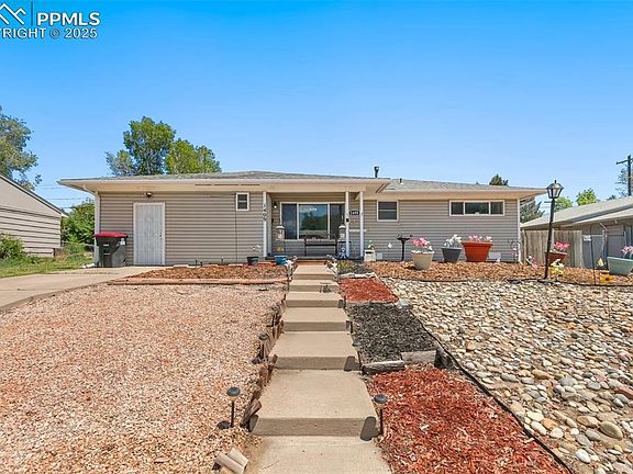 Welcome Home!!! This charming 3 bed, 1 bath ranch home is ready for it's new owner. Great home in a great neighborhood. You'll love the curb appeal with the xeriscaped front yard with sitting area to enjoy your view of Pikes Peak and the mountains. Inside offers a good sized living room, kitchen with plenty of cabinet space, gas stove, and soft close drawers, as well as a separate laundry room (washer/dryer included). Garage was converted to a storage/work shop/flex room from previous owners. Enjoy the large fenced back yard with storage shed and fire ring. This one has Central Air for those hot summer days. A/C added 2024, New Furnace 2024, New Dishwasher 2024, New Refrigerator 2023. Whole house was recently replumbed and sewer line replaced from house to city main. Close to parks, shopping and restaurants. Come take a look at this move-in ready home. You won't be disappointed!!!