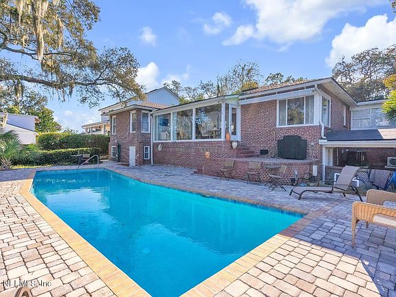 Awesome waterfront opportunity in St Nicholas! Recently dredged deep water lot on Miller's Creek just a few homes away from the mighty St Johns River. This home boasts some of the sweeping gorgeous views from multiple rooms down the deep water creek to the river. Make a splash in the newly marcited and pavered inground pool or sip coffee while watching glorious sunrises from your Florida room. Other great features include glistening wood floors, gas fireplace, updated kitchen, office or reading room with water views, three large bedrooms (the lower level bedroom is ideally suited to be a teen or inlaw quarter or game-room). Recently updated AC system, two remodled baths, and did I mention the panoramic VIEWS to die for? Roof 2020, Water heater and ac 2023