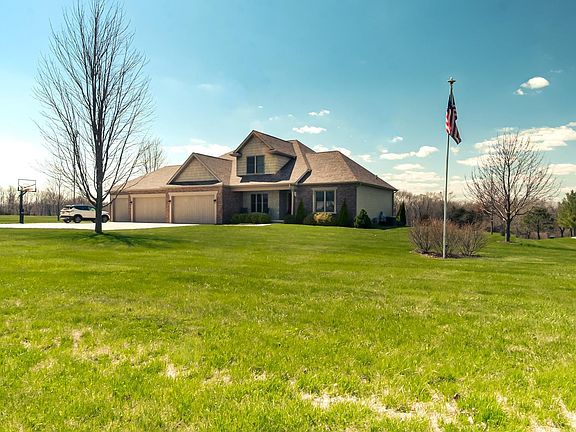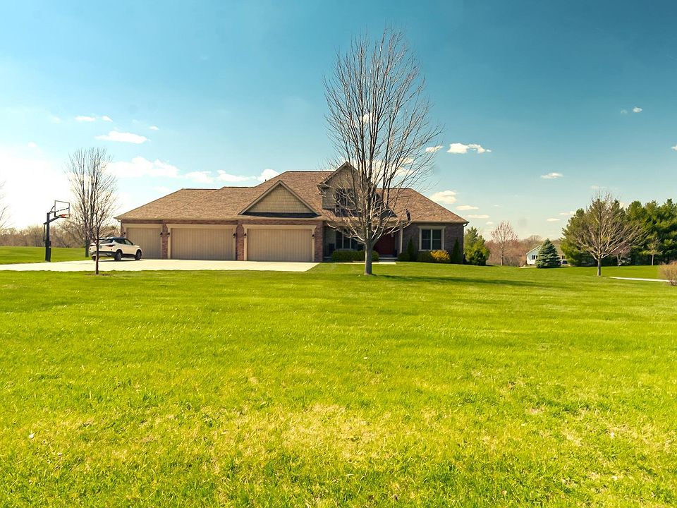Country living on 1.8 acres on a park-like setting with multiple maple and apple trees with gorgeous landscaping. Brick stone & vinyl add to the curb appeal of this 5 bedroom, 3.5 bathroom 1.5-story home. Main floor master offers spacious living areas. Custom kitchen cabinets in abundance, stainless steel appliances, granite and separate beverage area. Luxurious basement offers home theatre, work out center, dream home office, additional bedroom, full bath, and 9 foot ceilings! Spacious heated garage could hold 4 cars. Dining room could also be used as an office. Private well, natural gas, iron filtration system and so much more!