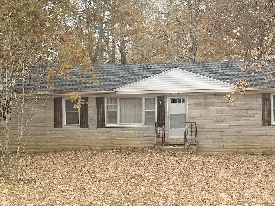 Great location! Beautiful stone home w/ lots of potential . 1456 Sq. Ft on main floor w/ 3 bedrooms, 2 bath and full basement. 2 rock fire places , den, bedroom, bath , game room in basement . Beautiful corner lot w/ lots of mature shade trees. Large covered carport and paved Dr. All city utilities.