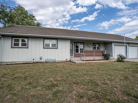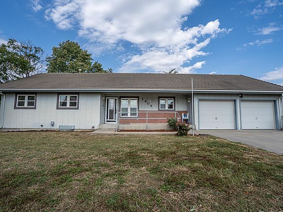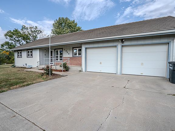 Welcome to this ranch-style home offering 3–5 bedrooms, 3 full bathrooms, and .53 acre m/l of space to enjoy. The main floor features a large kitchen with generous counter space, a bright living/dining area highlighted by a gas fireplace insert set in a limestone hearth, and a convenient main-floor laundry with folding counter and storage. The primary suite is complemented by two additional bedrooms and a full hallway bath. The oversized garage provides plenty of room for parking with two overhead doors, plus a front workshop area and a walk-out door to the backyard. The finished basement expands your living space with a cozy family room anchored by a wood-burning fireplace, two non-conforming bedrooms, a full bath, kitchenette, and a dedicated workroom with a walk-up exit. You’ll also find extra storage, a storm shelter, and plenty of space for hobbies or projects. This versatile property combines comfort, functionality, and room to grow, inside and out.