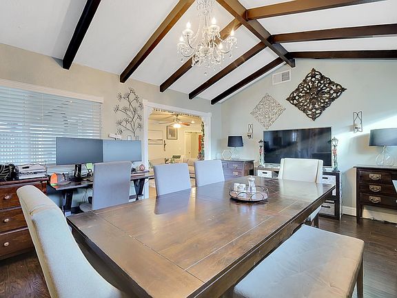 Welcome to this thoughtfully updated 3-bedroom home with potential for a 4th bedroom in desirable Arden Manor. Enjoy beautiful LVP flooring throughout the main living areas and a bright, open layout perfect for everyday living and entertaining. The stunning kitchen features granite countertops, white shaker cabinets, stainless steel appliances, recessed lighting, and sparkling pendant lights over a breakfast bar, plus a cozy breakfast nook and large laundry room with pantry space. The versatile flex room, currently used as a dining area, offers vaulted ceilings with exposed wood beams and abundant natural light, making it ideal as a potential 4th bedroom or flex space. The slate-faced fireplace adds warmth and visual appeal to the living area. Step outside to a spacious backyard with room for a pool or future outdoor oasis. Additional upgrades include a Square D electrical panel and HVAC installed in 2020. Centrally located near freeways, shopping, dining, and just 15 minutes to downtown Sacramento.