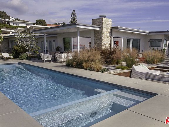 The panoramic views of the ocean, city, and mountains that will take your breath away. This sleek, simply stunning home has been redone and is fully furnished with high-end finishes. All rooms open to the magnificent yard, which offers various sitting areas for dining. The sparkling pool and spa overlook Catalina Island. The sun-filled living room has polished concrete floors, retractable glass doors, a corner fireplace, and an electronic drop-down projector and screen. The elegant kitchen, with Caesar stone counters, sub-zero refrigerator, Thermadore oven & wine cooler opens to the dining area with a large built-in banquet. The Primary bedroom has an attached office, enormous walk-in closet, and retractable doors, opening to expansive views. The home recently passed air quality tests for asbestos, lead and soot/smoke. The home is current leased until January 7th, 2026, and is available January 12, 2026 for a year or more, and will consider short term as well.