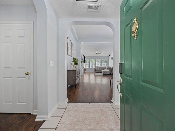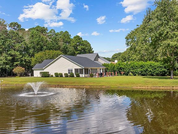Welcome to this beautiful ranch-style home, perfectly situated on a private wooded lot with serene views and unmatched outdoor living. From the moment you arrive, you’ll notice the unique setting—HOA-owned land across the street from the home ensures no neighbors will ever live directly in front, giving you a sense of peace and space rarely found in a neighborhood setting. Out back, enjoy ultimate privacy with a natural tree line serving as a living fence on one side, and a pond with a fountain on the other. The expansive yard is perfect for relaxing or entertaining, complete with a screened-in patio and an oversized concrete patio accented by brick columns, lantern lighting, and wrought-iron fencing—ideal for grilling, dining, or sunbathing. Inside, the open-concept layout is filled with natural light from large windows overlooking the backyard. The spacious living room features soaring ceilings, custom built-ins, and an 8-speaker Bose surround sound system—perfect for movie nights or entertaining with music throughout the home. The living room flows seamlessly into the dining area and bright kitchen with stainless steel appliances and ample cabinet storage. The split-bedroom floor plan offers privacy for the owner’s suite, while additional bedrooms provide plenty of space for family, guests, or a home office. This community offers amenities including a large pool, tennis courts, and a playground, plus added peace of mind with a security guard and cameras at each entrance. Conveniently located near shopping, dining, and entertainment. Just a 15-minute drive to the beach, 12 minutes to the airport, or 10 minutes to highway access! This home combines comfort, convenience, and privacy in one of the area’s most desirable neighborhoods. With its blend of comfort, privacy, upgraded features, and inviting outdoor living, this home is truly one of a kind—perfect for anyone looking to enjoy both community living and a private retreat.