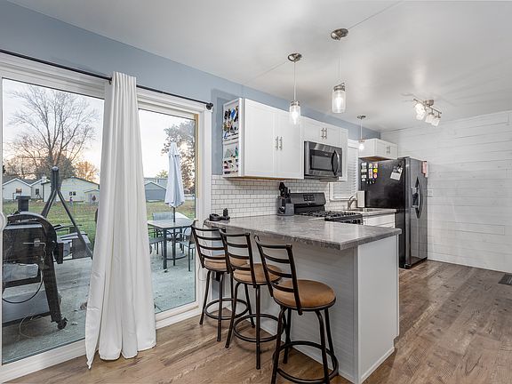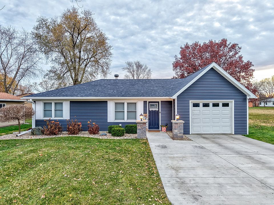 Fully updated and meticulously maintained, this impressive 2 bedroom ranch sits on a deep lot at the edge of Streator and offers standout curb appeal with its eye-catching exterior, manicured landscaping, paver pillars, and full concrete driveway. Inside, a spacious, light-filled living room welcomes you and is highlighted by a striking electric fireplace with a mantle and tiled surround. The updated kitchen provides abundant cabinet and counter space, a breakfast bar, all stainless-steel appliances, and a patio door leading to the backyard patio. The primary suite offers an ideal retreat with a generously sized closet accented by a stylish barn door. The second bedroom is also nicely sized. The updated full bathroom features a tub/shower combo and convenient linen tower. A main-level laundry room adds everyday ease. The fully conditioned, extra-deep attached garage is a standout feature, complete with its own mini-split HVAC system and excellent space. Outdoors, enjoy the large concrete patio, a spacious yard, and an ideal setting. This home has been thoughtfully updated both aesthetically and mechanically. Move right in and enjoy this beautifully maintained, truly turn-key home!