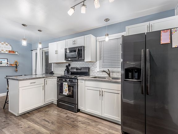 Manicured landscapingStylish barn doorStandout curb appealEye-catching exteriorPaver pillarsSpacious yardUpdated kitchen