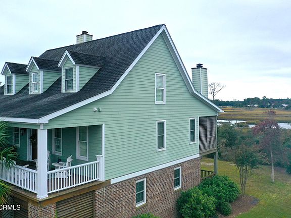 This stunning home in the highly sought-after Blair Farms community has expansive marsh front views. The home features 3 bedrooms, 3.5 bathrooms, hardwood floors throughout the main floor, a living room with vaulted ceilings, fireplace and gorgeous built-ins, the kitchen has custom cabinets, stainless steel appliances including double oven, granite countertops and a breakfast nook. Master suite includes an ensuite bathroom with double vanity, walk in tile shower, and WIC. The bottom floor has a large flex/recreation space with a wet bar, and another full bathroom which could be used as an in-law's suite. Throughout the home you will find ample storage including a walk-in storage access, and a separate laundry room. The Exterior features 3 large, covered porches, the waterfront porch has a stack stone wood burning fireplace. There is direct access to a tidal creek for exploring the salt marsh on your kayak or SUP. The home has professional landscaping and a 2-car garage. Blair Farms neighborhood features a large pool and clubhouse, just a few minutes from shopping, downtown Morehead, and the Atlantic Beach bridge. Call for a showing today, the pictures don't do it justice, you must see it in person!