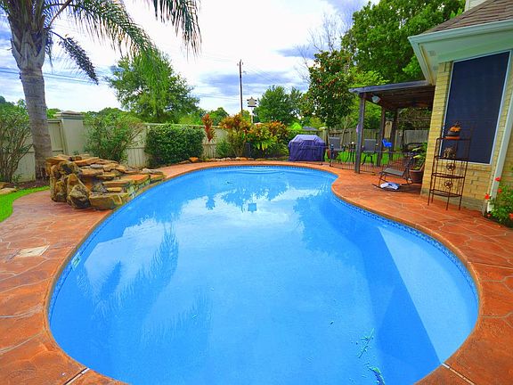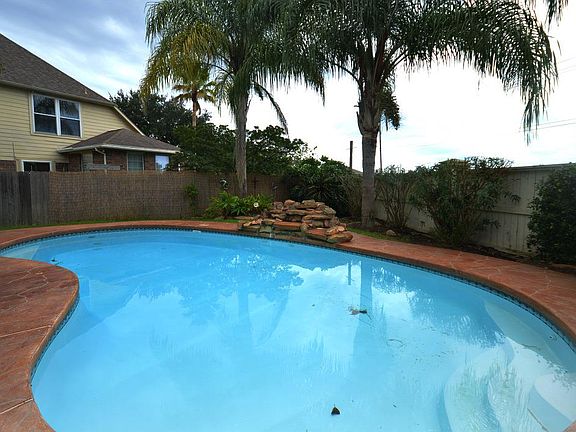 This home is a MUST SEE! Beautiful home in private Lakefront community! Tropical landscaping water feature by pool. Firework views from backyard from Kemah. Bedroom view over looking lake.Light & bright 4 bedroom/2.5 bathroom home features a stunning in-ground pool w/ covered back porch and surround sound speakers.The spacious Master Suite is a real retreat featuring double sinks, a garden tub & separate shower. Lots of natural lighting from large windows. Schedule your appointment today!