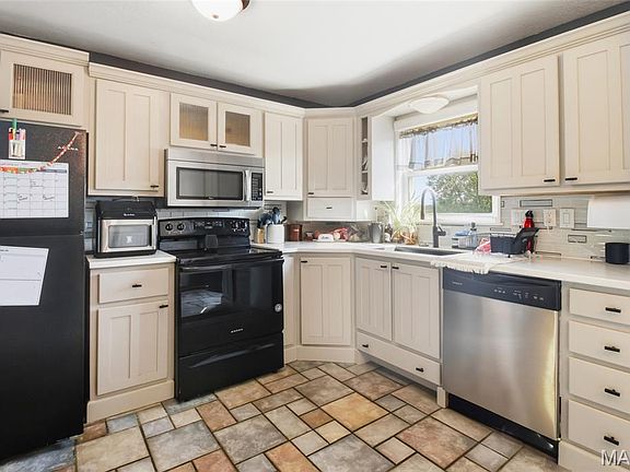 Welcome to this spacious split-level home offering over 1,700 sqft of comfortable living space! Featuring 3 bedrooms, 2 bathrooms, and a bonus room, this home provides plenty of flexibility for your lifestyle, whether you need an office, playroom, or guest space. Enjoy outdoor living on the large oversized deck overlooking the fenced yard, set on almost a half-acre lot with a basketball area and plenty of off-street parking. The custom kitchen is filled with special touches, and the hardwood flooring is beautifully accented with inlaid carpet and tile. Situated on a desirable corner lot in De Soto, you’re just a short walk from the downtown area and local farmers market. If a great garage is on your wish list, this one delivers, an oversized 29x25 garage with 10-foot ceilings, a rough-in for a bathroom, and a service door leading to the side deck. Lots of space, lots of yard, and an incredible garage — this De Soto gem is a must-see!
