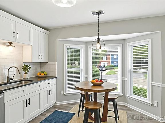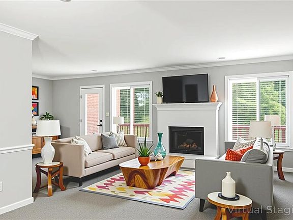 Cozy fireplaceModern cabinetryPrivate deckUpdated kitchen cabinetsBright bay windowRebuilt back deckBrick-front townhome