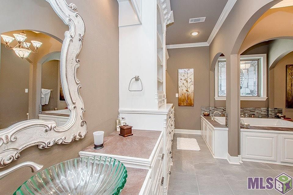 This custom built, one of a kind home has it all! It features a large chef's kitchen with attached butler's pantry, with open storage area for pots, appliances etc. The kitchen features custom cabinets with architectural corbels, appliques, and rope moldings in addition to 6 lit glass- mirrored display cabinets as well as a mantle over the range. The stainless appliances are a DCS Professional 6 burner gas stove and double dish-drawer. A large granite island, which includes an eat-at bar. From there you walk into the large den/family room that overlooks the pool area. Down the hallway is the Spacious Master Bedroom with a beautiful arch window overlooking the pool area. The Master Bathroom is equally impressive with a 6 foot Jacuzzi tub and walk-in shower, double vanity, cut beveled-glass window and beautiful custom cabinetry that spans the length of the room. The Master closet is room size with every inch of space being utilized, including a third row of pull-down hanging rods. This closet wouldn't be complete without a large island and beautiful chandelier. The laundry room is conveniently located off the master closet and hallway that you enter the 2nd bedroom and guest bath. Eight foot doors, 9 to 10 foot ceilings and crown molding featured throughout this lovely home.