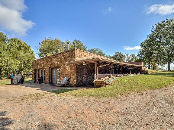 GATED Property with lots of wildlife and nature in this country setting. Uniquely built in 1977 and remodeled home in 2012 with lots of updates since like new double pane, low E windows 2023, a new 50 gallon hot water tank 2022, water softener, water pressure tank for well water, new HVAC in 2021, 2 Large living areas, large kitchen w/ breakfast bar and still room for dining table. 3 extra large bedrooms, 2 full baths, 2380 SF on 2.14 acres mol with lots of mature trees on 1/3 of property. Very secluded, with so many options. No HOA. Across street from Pulchella. Great Fireplace in the large living room and box stove in 2nd living area with french doors. Skylights for natural lighting. 2 HVAC systems. Multiple pantries. Enough room for an office or gameroom. There are 3 sheds for lawn and garden items and extra storage. Save on utilities in this mostly underground home. This home just have a feeling of being safe and secure. Utilities: all electric with OEC, gas is available at propertyline, fiberoptic internet, water well, septic (cleaned 2024). Livestock ok. Large parking area for RVs, equipment, or offroad vehicles. Room to build a large shop. Newcastle schools. Buyer to verify sq ft. Easy access to SH76 to TriCity, OKC or Blanchard; or Hwy 9 to Norman. Seller has priced property to be sold more quickly as is.