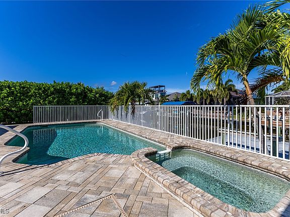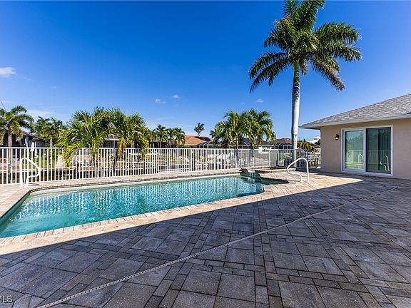 This Gulf access, 3 bedroom, 2 bath pool home is located in the SW Cape with just 1 bridge to open water in 25 minutes! NOT in a flood zone. No damages from Ian. New roof and gutters in 2020, impact sliders and windows, new water heater 2025. Swim and relax in the pool and spa, fish off of the large dock! New attic insulation. Assessments paid. Large living room with fireplace. The house is prewired for Quantum Fiber and ADT security. Oversized two car garage, large laundry room.