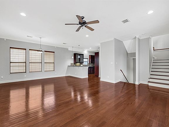 This great 3-bedroom, 3.5-bath single-family home offers the perfect blend of comfort and convenience in the heart of Houston. The first floor features a private guest suite with a full bath and direct backyard access ideal for visitors. Upstairs, you'll find high ceilings, hardwood floors throughout, and a bright, open living space filled with natural light. The modern kitchen boasts spacious cabinets and stainless steel appliances. Refrigerator, washer, and dryer are all included. Retreat to the beautiful primary suite with double sinks, a soaking tub, and an oversized separate shower. The additional bedrooms are generously sized, providing ample space for family or guests. The gated community offers controlled access, visitor parking, and a shared yard space. Located within walking distance of Discovery Green, Toyota Center, and some of the city's best dining and entertainment, this home also offers quick access to the Medical Center and major freeways.