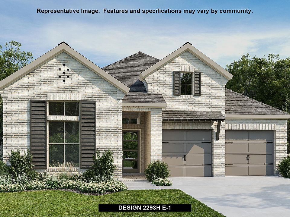 Home office with French doors off extended entry with 12-foot ceiling. Spacious family room with wall of windows opens to kitchen and dining area. Kitchen offers walk-in pantry and generous island with built-in seating space. Private primary suite includes bedroom with wall of windows. Double doors lead to primary bath with dual vanities, corner garden tub, separate glass-enclosed shower and large walk-in closet. This open one-story design features a guest suite with full bath. Abundant closet space throughout. Covered backyard patio. Mud room off three-car garage.