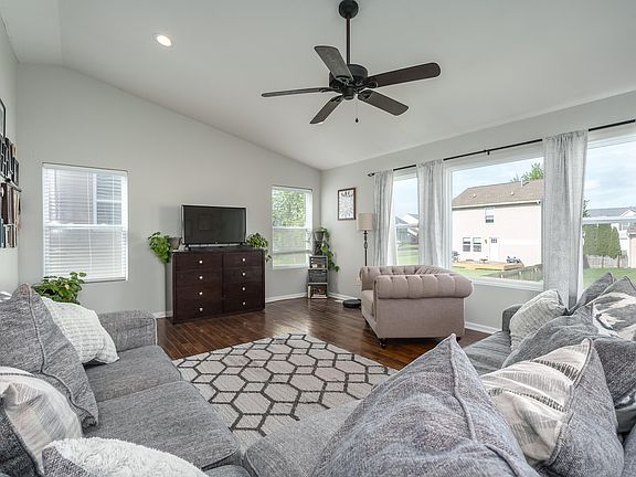 You wont want to miss this meticulously maintained bi-level with vaulted ceilings and an open floor plan. Situated on a low traffic street in the back of the subdivision, this home has been freshly repainted and is move-in ready! Many upgrades to include Whirlpool GOLD stainless steel appliance package (dishwasher and garbage disposal included), leathered granite, solid wood cabinets, high-end closet organizer, custom entry welcome nook, hand hewn hickory floors, LED can lights on dimmers, granite makeup counter in master bath, custom wine racks and entertainment center in lower level. The large 16x 20 deck is perfect for entertaining or relaxing evening. Come see it today!