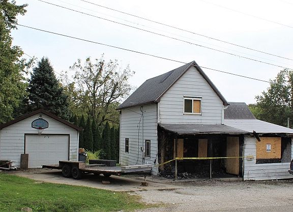 Fire Sale! This 3 bedroom, 1 bath home with 1.5 car garage has had a house fire and is being sold AS IS. Fire damage is mainly in the front part of the house in the living room and kitchen but smoke damage is everywhere. The garage has no fire damage, Nice double lot near the edge of town. The main floor features a living room, kitchen, 1 bedroom, a full bath and laundry area. The second floor has 2 bedrooms. If you are handy in carpentry and looking for a nice edge of town location . . . you may want to take a look. Note: Living room is taped off and do not go into the living room because floor may not be stable.