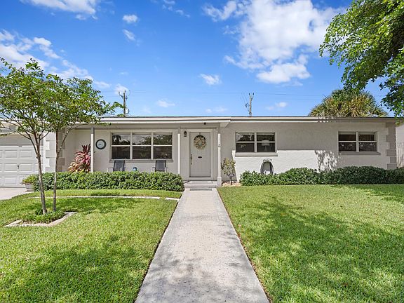 Tucked away on an oversized lot, this stunning single-family home boasts 4 bedrooms, 2.5 bathrooms, and a rare 2,000+ square feet under air, offering the perfect blend of space, style, and comfort. From the moment you arrive, the ultimate curb appeal captures your attention with mature trees, lush landscaping, and a charming front porch - perfect for morning coffee or evening wind-downs.Step inside and be greeted by abundant natural light, an airy open feel, and immediate views of your tropical backyard paradise. The home has been tastefully renovated with a modern coastal design, creating a serene and stylish atmosphere throughout. Enjoy dual living and family rooms, ideal for entertaining or spreading out, along with a split floor plan that offers maximum privacy - especially great when guests come to visit. The spacious screened-in patio provides a shady retreat on sunny Florida days or a quiet spot to unwind outdoors.