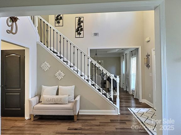 Beautiful 5 bedroom, 3.5 bath, 3 story home in highly sought after Briarcrest North subdivision! This home has it all including a private back yard oasis! Zoned for award winning Cuthbertson schools. This thoughtful layout features an open concept floor plan with brand new hardwood flooring throughout the main level. Great room is hard wired with ceiling speakers for enhanced multimedia entertainment. Upper level boasts an oversized great room with 3 bedrooms, a full bath, and exceptional master bedroom with separate sitting area and en-suite bath. Master bath has been upgraded with modern vanities, fixtures and bluetooth capable ceiling fan. Third level features a massive great room with fireplace and additional bedroom with direct access to full bath. Custom sliding glass doors with built in blinds open from kitchen to your backyard oasis! Complete with palm trees, large salt water pool, with brand new liner (replaced July 2025), expanded decking finished with Sundek Classic Texture with Knockdown Finish in May 2022, gazebo, cooking area with electric featuring a large custom built Argentinean Santa Maria Grill. This is home is an entertainers dream!