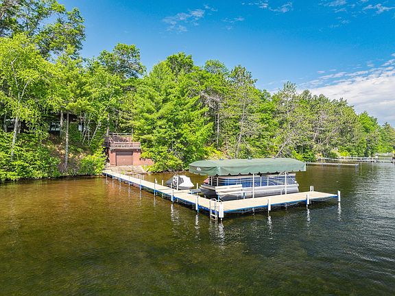 Big Crawling Stone Lakefront Estate on the sought-after west shoreline of one of the highest quality lakes in the Northwoods. Part of the renowned Flambeau Chain of 10 Lakes, Crawling Stone is known for its sand shorelines & crystal clear waters. This generational family campus is set on a private, wooded 4.8 acres w/ 330’ of ripple sand frontage, offering big water Eastern views. Two boathouses & multiple docks, 2 car att garage, outdoor gathering areas, 250 gallon lakeside gas tank. The main home features 5 bdrms & 6 bathrooms. Spacious and bright living areas, featuring lakeside windows, 2 authentic woodburning fieldstone fireplaces, maple floors, knotty pine walls. Unfinished lower level offers a rec room, 2 laundry areas, 1/2 bath & excellent storage. Property also features a 2 bedroom, 1 bath guest cabin w/ a woodburning fireplace & kitchenette. Located only 15 minutes from all the amenities & attractions of Minocqua. Truly a lakefront legacy Property - www.BigCrawlingStone.info