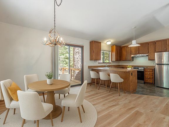 Refreshed, adorable and ready for summer, this delightful cabin brings all the comforts for mountain living! You'll love the great mid-Tahoe Donner location - it's just a short walk to Tahoe Donner's Trout Creek Rec Center. 14094 St. Croix offers a rare, flat and spacious .38 acre home site nestled on greenbelt. This GEM brings a brand new roof, new kitchen appliances, new luxury vinyl flooring, wood burning stove and all the comforts for your mountain retreat! This single level design highlights year 'round easy living. The great room, dining area and kitchen are open and spacious with easy deck access for indoor-outdoor enjoyment. The bright primary suite, second bedroom and bathroom are located in their own wing. Laundry facilities are just off the mudroom. There's plenty of storage plus a large, two car garage. Summer or winter, this cheerful setting is sure to please. Here's the Tahoe Donner property your family has been awaiting!