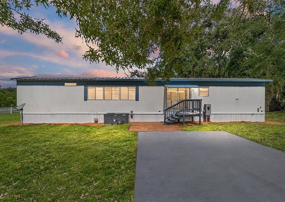 Welcome to Little Lake Weir in Summerfield, FL. This well-maintained 2-bedroom, 2-bathroom home offers 744 square feet of living space on a fully fenced .22-acre lot. Inside, you'll find tile and laminate flooring throughout, eliminating the need for carpet maintenance. The washer and dryer, just one year old, are located indoors for convenience. The air conditioning system, while 10 years old, has recently been serviced, and the septic system was recently pumped. The property is conveniently located near Highway 441, providing easy access to shopping and dining options.
