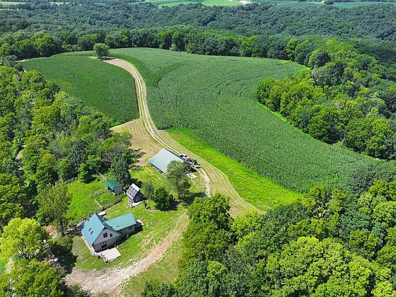 Set on a wooded ridge in Wisconsin's Driftless Area, this 57+/- acre retreat offers privacy, scenery, and strong recreational potential. Mature managed hardwoods, ridges, and benches create ideal wildlife habitat, with the Kickapoo River bordering the west side for fishing and paddling nearby. A cozy 2 bed, 1 bath cottage with fiber internet, new drilled well, and septic makes an inviting base camp or future full-time home. A 2448 pole barn with concrete floor, 1048 lean-to, and outbuildings provide storage. About 16+/- acres of open ground offer income or room for food plots, hobby farming, or expanded habitat. Parcels of this size and character are increasingly rare in the Driftless, with up to 109+/- acres available. Timber, fields, and ridge-top views round out this manageable acreage.