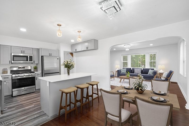 Completely Renovated 6 BR 3 Full Bath Home in the Hillcrest Section! Offering a completely renovated finished basement IN-LAW SUITE includes 2nd Kitchen with brand new appliances, Family Rm, 2 BRs, Full Bath and Laundry Area. The first level offers a completely renovated Kitchen with custom cabinets, quartz countertops, large island and SS appliances, Huge LR opens into DR and Kitchen, 2 BRs and Full Bath. Second level offers 2 BR and another completely renovated Full Bath! Gleaming hardwood floors on first floor! Beautiful new flooring on the 2nd floor and finished basement. Lots of natural light. Brand New Roof on House (new gutters) and Garage! New French Drain and sump pump. New 2 zone Central AC. All brand new appliances are included. Must see all this home has to offer. UST will be removed by seller before closing. Home has gas heating.