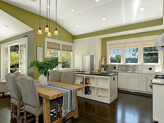 High in the midst of urban greenery this custom designed home is sited to take advantage of brilliant western exposure and vistas of the UW, downtown and a bit of the lake. Built in 2003 with a dynamic open reverse floor plan, vibrant lines and crisp details. A cut above in quality and artistry throughout. Outdoor space designed for entertaining with pizzazz. Surrounded by sensational gardens of contrasting colors and textures. Alley access to 2 car garage with level entry.