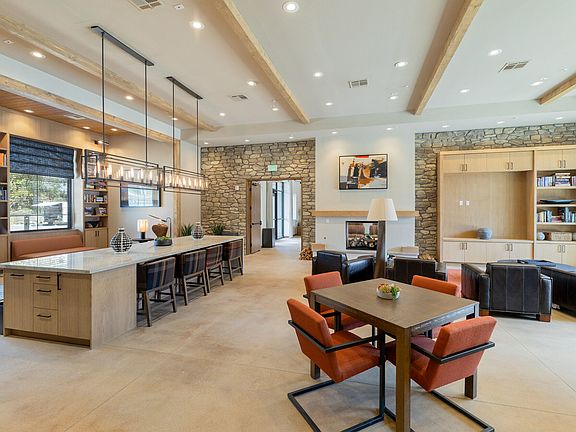 - Exterior features: *In Select Units, 9- & 10-Foot Ceiling Heights, Gas Fireplaces*, Poolside Ramada with Kitchen, Stainless Steel Kitchen Appliances, TV Lounge