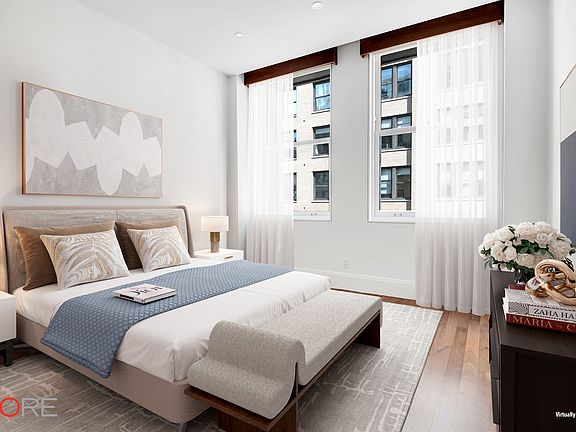 Welcome to Residence 9D at 141 Fifth Avenue, a spacious two-bedroom, two-and-a-half-bathroom loft that seamlessly blends prewar grandeur with modern, top-of-the-line finishes and premium fixtures, creating a truly special home in the former Merchant's Bank of New York, located in the heart of Flatiron. Through the foyer, enter the elegant 1,791 square-foot residence that is flooded with northern light. The impressive scale of the great room is accentuated by nearly 11-foot ceilings and two oversized windows. The open chef's kitchen is outfitted with custom millwork and state-of-the-art appliances, including a six-burner Wolf range, glass door Sub-Zero fridge, an additional wine fridge, Bosch coffee system, and a Bosch dishwasher. Enjoy your own private wing with an ideal split bedroom layout. The gracious master suite features a large walk-in closet and a luxuriously appointed bathroom boasting an oversized WaterWorks soaking tub, separate stall shower, and dual vanity. The generously proportioned second bedroom is serviced by an equally luxurious en-suite bath. Additional conveniences include an in-unit washer/dryer and central A/C. Built in 1897, this Beaux-Arts classic with a unique curved facade, copper cupola, and terra cotta detailing, was converted to a boutique loft condominium with a 24-hour doorman, live-in superintendent, and gorgeous roof terrace. Located in the center of Flatiron, you are surrounded by landmarks like the Ladies Mile Historic District, Madison Square Park, Union Square Park, and some of the city's finest dining, shopping, and transportation. Pets are allowed case-by-case.