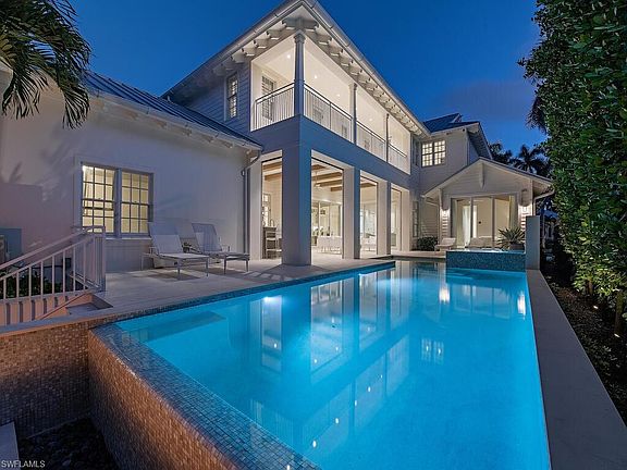 Built above FEMA to 11' with a whole home generator, no flood damage in recent storms, this stunning 2017 Old Naples cottage design is low maintenance and built to last. The exceptional location just one block off the beach and walking distance to both 5th Avenue and Third Street shopping and dining districts is hard to find. Penned by Stoft Cooney architects and crafted by Toscana Homes. The interiors are beautifully appointed and furnished by Bay Design with Wolf & Subzero appliances showcased by Elmwood custom cabinetry and mitered quartzite counter tops. White Oak flooring throughout. Luxurious white marble and glass-porcelain tiles adorn the baths. Premier Systems designed the home, security and lighting controls via Lutron, Savant, and Sonos audio. Full concrete block construction with a standing seam metal roof, motorized lanai screens and shutters, elevator, and impact glass windows and doors. Two car garage is equipped with side mount motors and 15' height for future car lifts, or space to add on.