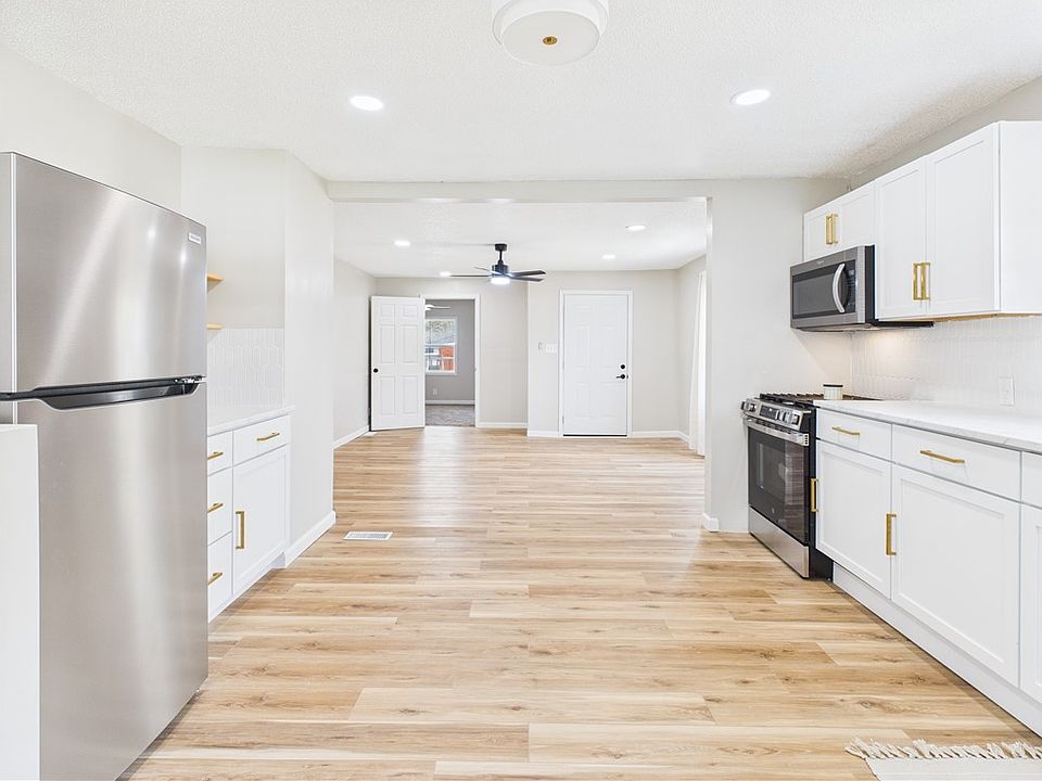 Modern fixturesFresh finishesFenced-in backyardStylish kitchenSpacious back deckStainless steel appliances