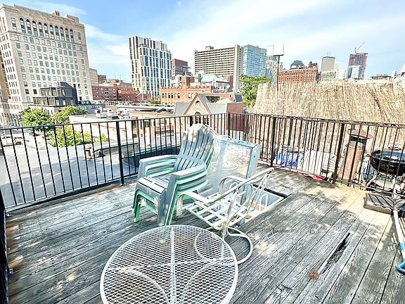Open layoutHardwood floorsQueen-sized bedroomGranite countertopsPrivate roof deckBright top-floor