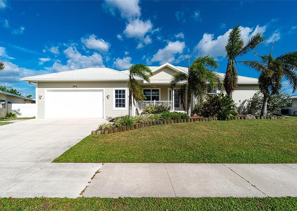 Gulf Access 4 Bedroom, 2.5 Bathroom, Waterfront Pool Home located in Port Charlotte. Great opportunity to own this home with 100 feet of waterfront located on the Bangsburg Waterway with quick sailboat access to Charlotte Harbor and the Gulf of Mexico. With over 2,200 square feet of living space, this home has perfect spaces for all, including living room, family room, dining room, and 4 spacious bedrooms all connected to the beautiful outdoor area that makes this perfect for living out your Florida dream lifestyle. The inviting front porch and etched glass door entry opens to the foyer and into the formal living/dining room featuring tiled floors throughout living space, soaring ceilings, and plenty of windows that let in the natural sunlight. The gourmet kitchen is the centerpiece highlighting granite countertops, stainless steel appliances that include a new Kitchen Aid built-in microwave/oven, large breakfast bar, center island, hardwood, soft close cabinetry, pantry closet, and dinette area. The kitchen is open to the Family room featuring an electric fireplace and French doors out to the pool area. With a split bedroom floor plan, that offers functionality and privacy, you can enjoy a gracious master suite with private access to the pool area, custom walk-in closet, and a unique en-suite bathroom featuring an amazing walk-in shower, classic jetted soaker tub, and extended vanity with his/her sink area. Family and friends will appreciate the guest suite with two guest bedrooms, one with a walk-in closet, and full guest bath. The fourth bedroom makes a great office area with built-in desks and cabinets. Relax on your covered lanai with outdoor shower and half bath (plumbing in place to add an outdoor kitchen) or take a refreshing swim in your heated salt-water pool with spa. Head out to the brick-paved patio area with a fire pit or down the pathway to the waterfront with two docks, a 10,000 lb. boat lift, water and electric, and cement seawall that extends the length of the lot. Home also features an over-sized two car garage with workshop area, parking pad with electricity on the side of the home, metal roof, hurricane shutters, laundry room with washer/dryer, A/C 2018, and more. Conveniently located to shopping, dining, US41, I75, beaches, golf.