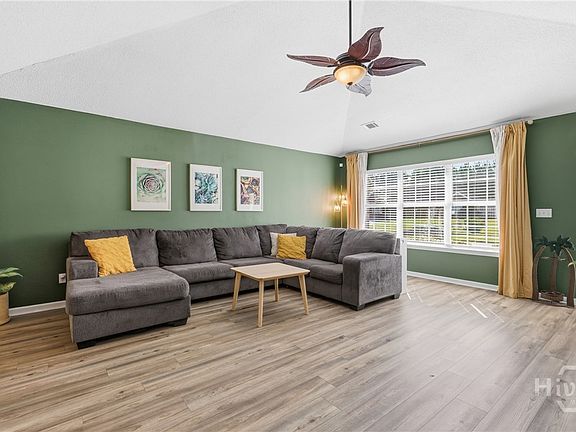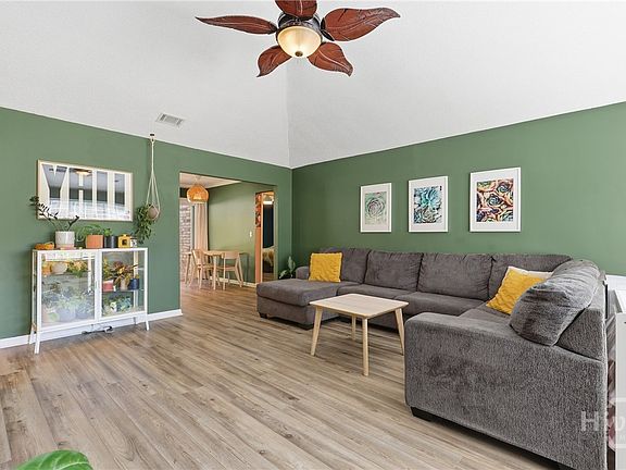 Tucked into a quiet Pooler neighborhood, this single-level 3-bedroom, 2-bath home offers a smart split floor plan, brand new flooring, vaulted ceilings, and abundant natural light throughout. The living room centers around a wood-burning fireplace and flows into a well-appointed kitchen with stainless steel appliances and an adjoining dining area. The owner’s suite is privately set apart with a spacious walk-in closet and full en-suite bath, while two additional bedrooms and a second bath complete the layout. Out back, a fully fenced yard overlooks the water—perfect for quiet mornings or afternoon play. Major upgrades include a new roof in 2023 and HVAC system in 2022, and both bathrooms updated. With a two-car garage and easy access to shopping, dining, the airport, and I-16, this move-in ready home blends comfort, convenience, and value in one of Pooler’s most accessible locations with no HOA!