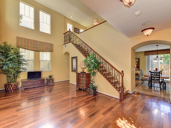 Wow! This stunning former model home is loaded with upgrades and timeless style. Rich hardwood floors, natural stone tile, and cherry-toned cabinetry create a warm, elegant atmosphere. The grand living room features soaring ceilings, wood floors, and custom iron-spindle railings details rarely found at this price point. The spacious family room with a statement fireplace opens to a beautifully upgraded kitchen with granite slab counters, a full tile backsplash, upgraded cabinetry and a large island. A versatile double-door study is located just off the living room. Upstairs offers generously sized bedrooms and a private primary suite with a spa-like bath, separate tub and shower, and a large walk-in closet. The mature, landscaped backyard includes a fountain, patio, and trellis perfect for relaxing or entertaining. Includes a finished garage and full two-car driveway. A wonderful-convenient location, near parks, schools, shopping, freeways and downtown Sacramento.