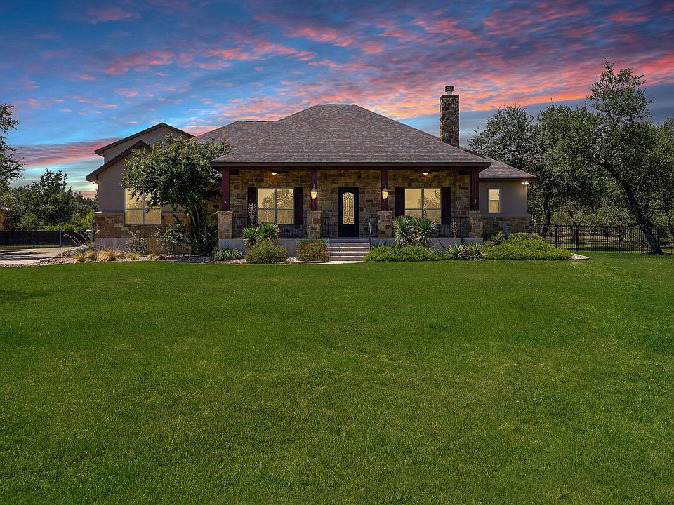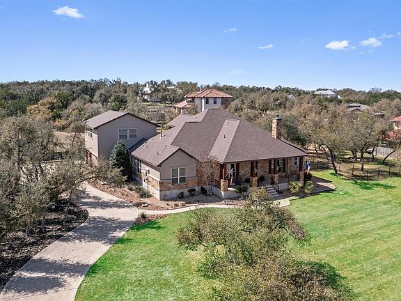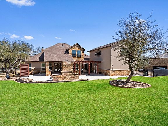 Freshly painted & topped with a brand-new roof completed in summer 2025, this stunning NE-facing custom home is perfect for multigenerational living. Along with its elegant main home, it includes a private-access garage apartment featuring a kitchenette, spacious living/bedroom area, full bath. Plus, with an extremely low tax rate & zoned to award-winning Leander ISD schools, it offers unmatched value! The oversized front yard & welcoming front porch greet you the moment you arrive. Through the striking cast iron front door, the foyer opens to a formal dining room & an elegant home office. The office is enhanced with glass French doors, Brazilian hardwood floors, a charming fireplace, & built-in shelving & cabinetry. The living room transitions seamlessly into the kitchen, featuring granite countertops, an island with bar seating, dark wood shaker-style cabinetry, a glass tile backsplash, stainless steel appliances, & a breakfast nook. The main-level primary suite offers a retreat with a tray ceiling, spa-like ensuite including dual vanities, a tub, mud-set tile shower with seating, & a spacious walk-in closet. Two additional bedrooms on the main level each come with their own ensuite baths & walk-in closets—ensuring no shared bathrooms. Upstairs, a secondary primary suite with bamboo flooring, a walk-in closet, & a full bath provides flexible space as a private getaway or additional living area. The oversized 38’ x 30’ garage includes a workshop & insulated doors, while the private-access apartment above is perfect for extended family, guests, or even a game room. An expansive driveway & dedicated trailer parking pad add extra convenience. The backyard is designed for entertaining, complete with multiple patio areas, dramatic landscape lighting, & a covered outdoor kitchen. Unwind by the outdoor fireplace, lounge under the pergola, or enjoy the evening on the extended patio. The home is also prepped for a hot tub with a designated outlet & has room to add a pool.