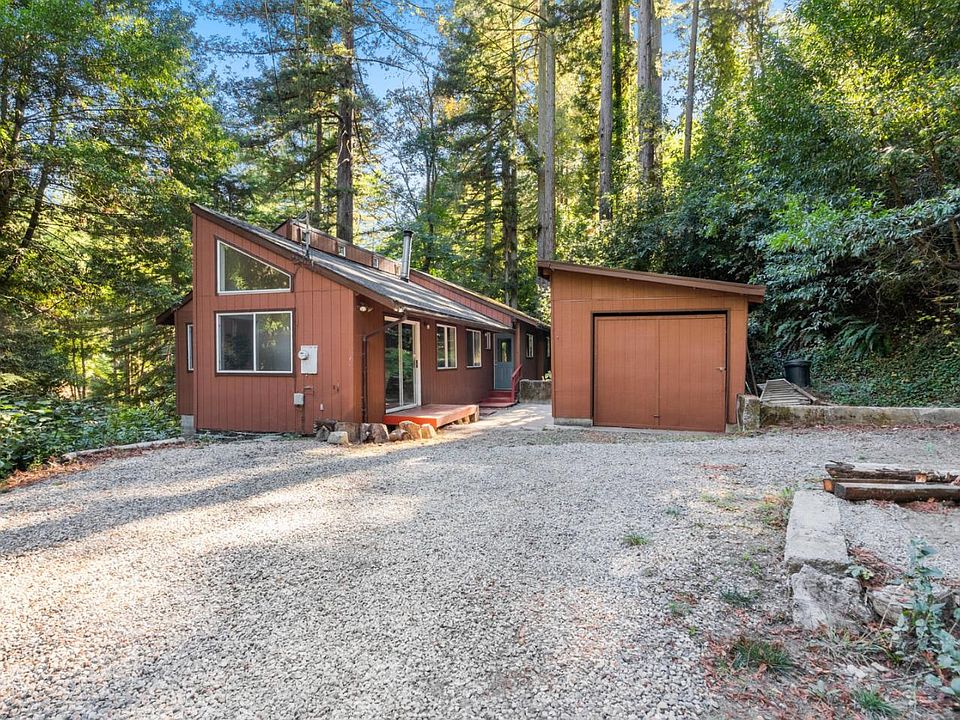 Welcome to the enchanting Santa Cruz Mountains, where the allure of small-town living meets the tranquility of nature. This recently updated 2bed + office, 2bath abode is the epitome of rustic elegance and modern comfort w/ a spacious living space, perfect for cozy gatherings or quiet nights by the wood burning stove. Boasting additional 2 lofts + an office space where you can let your creativity flow. The property spans over half an acre, providing ample space for outdoor activities. Includes detached garage + ample parking. Immerse yourself in the natural beauty of the redwoods, with picturesque creek views. Embrace the peace and quiet of this private retreat, where the soothing sounds of nature create a harmonious symphony, and the lush greenery provides a sense of seclusion. Just a quick drive away, you can enjoy the sun-kissed beaches of Santa Cruz. For those who crave a small-town feel yet desire easy access to the vibrant coastal life, this property offers the ideal balance.
