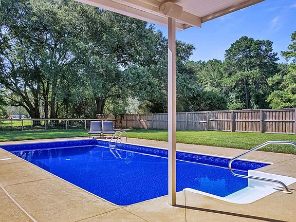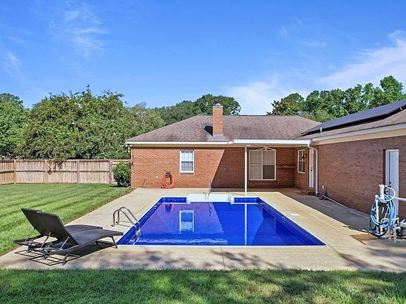 ~ A LEE COUNTY DREAM PROPERTY ~ IN-GROUND POOL WITH NEW LINER ~ SOLAR PANELS ~ FENCED YARD & DOUBLE GARAGE ~ IMMACULATE & MOVE-IN READY ~ This beautiful all brick 3-bedroom 2 bath home features 1676 sqft, new LVP flooring throughout, updated paint and excellent split bedroom floorplan! Spacious living room complete with a brick fireplace and loads of windows for natural light! Amazing kitchen features granite countertop, stainless appliances, island, updated cabinets, window over the sink, awesome walk-in pantry with built-in shelving and large dining room! Lovely primary suite with walk in closet and private updated bathroom! The two additional bedrooms are spacious and have ample closet space! Outside boasts covered front and back porches, the house is wired for a generator, termite bond, new septic in 2021, double garage and a double fenced yard so your dog has a separate place to play! The pool is awesome and provides loads of lounging space that is perfect for entertaining, grilling and enjoying the outdoors! Wonderful neighborhood that is ideal for walking and riding bikes and close to everything including the by-pass. Do not let this opportunity pass you by!!