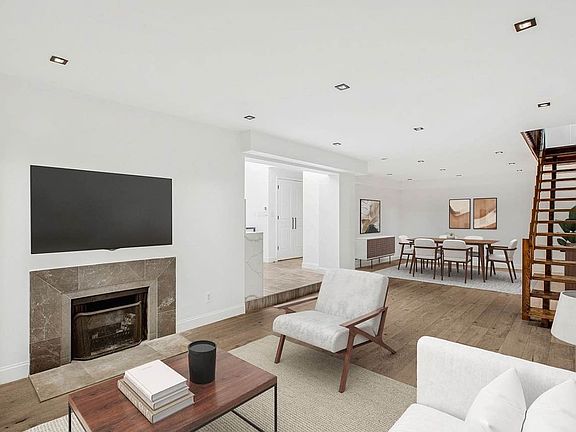 Every detail has been carefully considered. The open-concept kitchen is a culinary dream, featuring high-end Viking appliances and positioned beneath a dramatic skylight that fills the space with natural light. Soaring ceilings, a functional fireplace, and wide-plank White Oak floors throughout create a sense of warmth and sophistication.