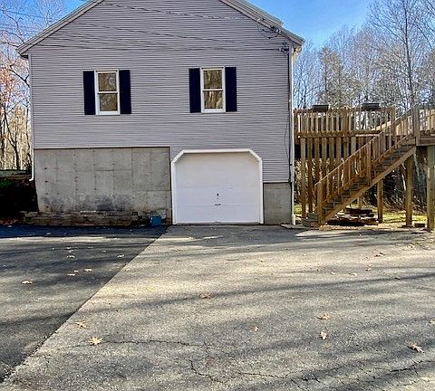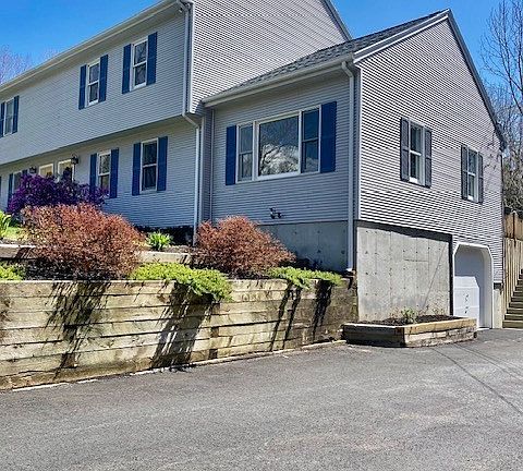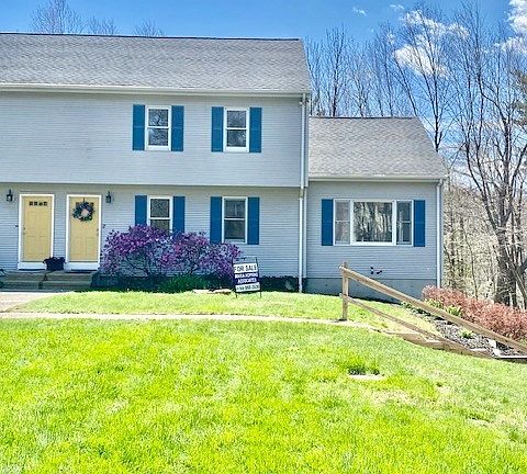 Comfortable Large Colonial Town Home. Located in a lovely wooded setting just off rte. 68, abutting Mass Central Rail Trail and conservation land. There are 3 duplexes in this small condominium community with only 6 units. Each duplex has its own setting with a septic and well. This is a premier location on an estate setting with wooded views. These homes have expansive lawn areas, and exclusive use of driveways shown on the site plan as well as guest parking, etc. Great school system. Large cathedral living room, large eat in kitchen with lots of cabinet and counter space, oversized dining room great for upcoming holidays, first floor laundry off the kitchen. Composite decking and one car garage. Full dry basement. Very well insulated. Recent updates include new bathroom vanity, new flooring throughout most of the home, interior was freshly painted throughout. Recent oil tanks, boiler within 5 years. Roof approximately 10 years old. Low condo fees! Owner financing available.