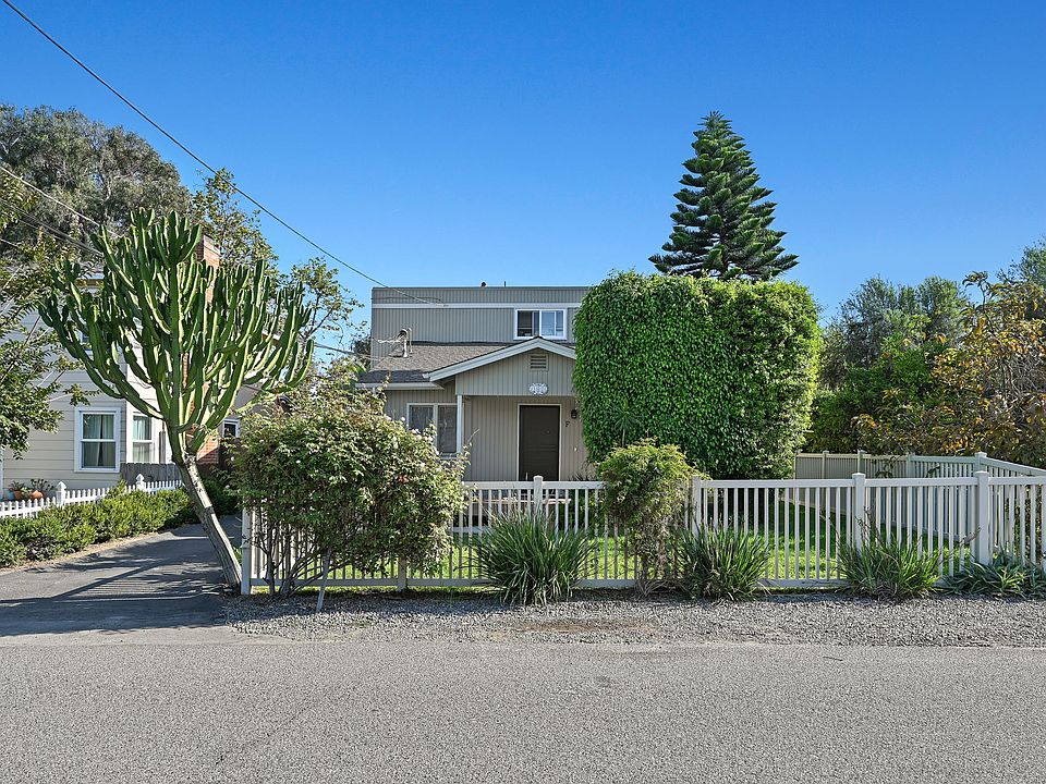 Fenced front yard, large covered front deck and convenient off-street parking. Fully finished detached storage building suitable for office use, an art studio, a meditation room, or secure storage. Secondary fenced area great for outside storage of ebikes, surfboards, paddleboards, etc. Shared laundry facilities on-site.