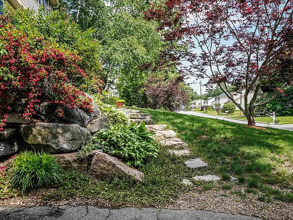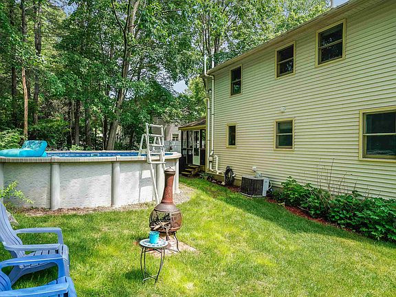 Outstanding Eastwind Estates Colonial featuring 1st floor with inviting slate tile entry, spacious living room with wood burning fireplace with slate tile surround and hardwood floor, excellent open concept kitchen/dining area with hardwood floor has large dining room open to kitchen with island with seating, pantry, new stainless-steel appliances, and French door slider to relaxing 3 Season porch with cathedral ceiling with fan, 1/2 bath with convenient 1st floor laundry and wonderful den. The 2nd floor with bamboo flooring throughout includes a fantastic primary suite with vaulted ceiling, walk-in closet, and completed remodeled luxurious primary bathroom with tile shower and floor, additional full bathroom with tile floor and two more sizable bedrooms. Plus, full finished walk-out basement with great office and utility room with sink, 2 car garage, central air conditioning, some replaced windows, vinyl siding, public water and sewer, beautifully landscaped grounds with stonewall, mature gardens with flowers, cherry tree and private backyard oasis with above ground pool and hot tub all in highly desirable location in Memorial High School district with quick access to all major highways. See floorplan, 3D tour, video walk through and showing packet for additional info. Private showings welcome.