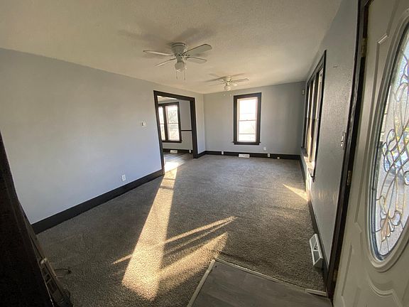 The other two bedrooms are also spacious and located on the main floor, along with the roomy dining and living areas. The kitchen has cabinets on both sides, giving you plenty of counter and storage space. The house has a large unfinished basement with washer dryer hookups and lots of rooms for storage and other uses.