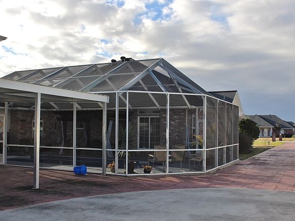 Unique well maintained home. Open flr plan, Cathedral foyer, office, half bath. Spacious kitchen w/granite ctr tops, brick flr, large island w/stg, walk-in pantry, blt-in gas cooktop, oven & microwave, lots of cabinet space, spacious lvg rm w/wet bar & adjacent dining area. Master ste opens to pool area, pvt mst bath w/large walk-in closet w/blt-ins, claw foot tub, large sep. shower, dbl vanity. Utility rm has wash out sink, rm for stg. Jack-n-jill bath btwn bdrms, large walk-in closets, lam. flrs. Sunroom opens to screened pool & pool house/recreation rm w/full kitchen, utility rm, bathroom downstairs & 3 bdrms/full bath upstairs. Pool house could be converted to MNL suite. Attached 3 car carport, "garage" stg & rear cvd stg patio plus det. stg. In-ground salt water pool w/cvd Pergolo.
