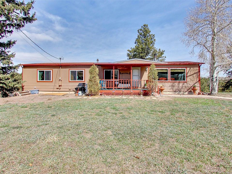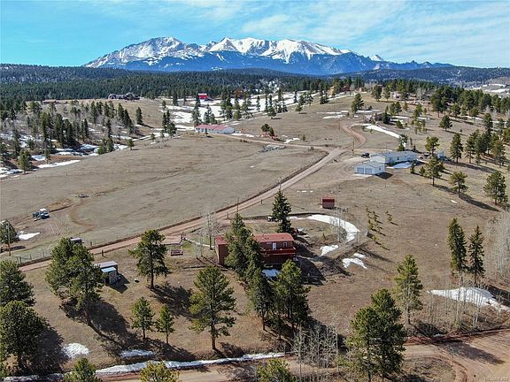SEE VIRTUAL TOUR FOR 3D WALKTHROUGH. Beautiful mountain home with almost 2 acres, zoned for horses, and completely main-level living. 3 bedrooms, 2 baths and over 1400 sq ft of basement space with 8 ft ceilings and room to store 3 vehicles with additional workshop areas. This home is updated and has sunlight streaming in! And, gorgeous views of Pikes Peak and the mountains. The acreage is completely fenced for your horses or other livestock and has a small barn on it. The deck overlooks the pasture and Aspen grove.