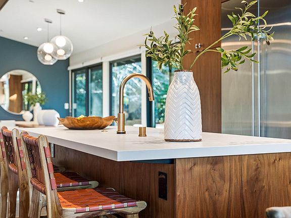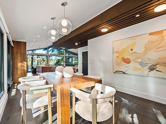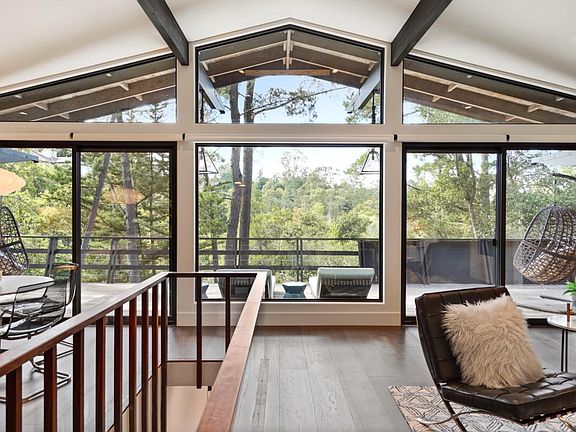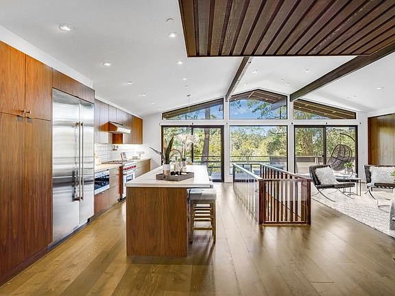 This midcentury modern gem built by renowned architect and landscape designer Eric Clough perfectly preserves 1960s minimalism coupled with the most state-of-the-art modern finishes and technologies. Nestled in the beautiful natural landscape of Burlingame Hills bordering Hillsborough, this home is a tranquil refuge offering quick access to SF and the Silicon Valley. The recent to-studs renovation has been done with incredible attention to high-end detail, including a custom gourmet kitchen with bespoke tile backsplash and high-end appliances, heated flooring in all baths, smart toilets, smart thermostats, smart kitchen sink, custom walnut cabinets, custom shades on all windows and a Tesla 220 volt charger. Enjoy the beautiful colors of the evening sky against the stunning backdrop of the surrounding nature from the open kitchen and dining room. The half acre lot also includes a wonderful side yard with dramatic tree views, beautiful and untamed natural scenery and even a small creek.
