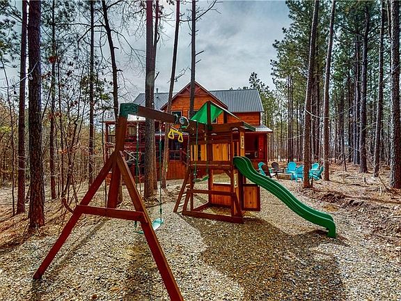 Located in the perfect location for those with an adventurous soul, this modern cabin is ready to host some of your favorite vacation memories! The interior offers, a well-decorated living room with high ceilings and large windows that bring in natural light. The modern-style kitchen is spacious and comes equipped with stainless steel appliances and ample meal prep space. Dine together at the charming, dining table, or the breakfast bar. Downstairs, the adults and kiddos alike will love the game room, complete with a bar, pool table, air hockey table, and gaming system. Also downstairs, you'll find a bunk room and a beautiful marble-lined bathroom. On the first level, you find the primary bedroom, a true gem. Incredibly spacious with a seating area, fireplace, and an impressive en suite bathroom. The second level offers 3 spacious bedrooms. Outside, enjoy the sunshine from the comfort of the private hot tub and many kid spaces to play. Close to Broken Bow Lake and Choctaw Casino.