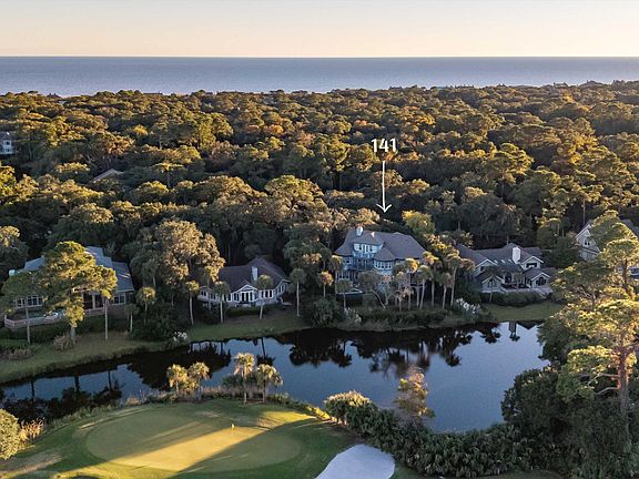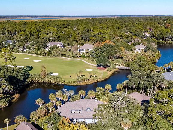 Stunning Kiawah home tucked behind the island's secure second gate, where this refined residence offers both grand scale and quiet elegance.The home sits on a generous lot overlooking the sweeping fairway and green of the 14th hole of Osprey Point Golf Course across Bufflehead Pond. The setting invites relaxation and beautiful views from every level.You are greeted by striking mahogany doors that open to a grand foyer with limestone flooring, where you begin to get a feel for the rich architectural details within--arched openings, turret windows, and coffered ceilings--hint at the refinement within. Step down into the living room, where Brazilian cherry floors, coffered ceilings, a marble-surround fireplace, and floor-to-ceiling windows frame the lagoon and golf course beyond.The spacious kitchen features top-tier appliances, including a Wolf four-burner gas cooktop with center griddle, Wolf double wall ovens, Wolf warming drawer, and Sub-Zero stainless-steel refrigerator. A large center island with breakfast bar and a dedicated butler's pantry with Sub-Zero wine cooler and ice maker make the space ideal for entertaining with ease. A study or keeping room with fireplace provides a quiet retreat to reflect and enjoy the beautiful natural setting. Spacious and inviting, this home offers five well-appointed bedrooms and multiple baths. On the second level are four generous guest suites, each with a private bath, along with a media area, wet bar or coffee station, and laundry room. An additional room on this floor is perfect for a study or office, giving guests space to retreat to their own areas. The third (top) floor is dedicated to the primary suite, complete with a sitting room and fireplace, breakfast bar, private balcony, and a luxurious bath featuring a soaking tub and oversized shower with multiple showerheads. An elevator provides easy access to all levels of the home. Outdoor spaces are designed to take full advantage of the golf course and lagoon vistas. Wide porches and balconies on every level draw the eye toward the view, while large decks and a heated pool complete the premier outdoor living spaces. Don't miss the private garden courtyard with iron gates, lanterns, and Charleston pigeon-hole brick walls. Additional features include a two-car garage with ample storage for LSVs, golf clubs, bikes, kayaks, and other beach gear, a Rain Bird irrigation system, custom built-in cabinetry, wired sound system inside and out, and central vacuum. This home offers the quintessential Kiawah lifestyle just minutes from the beach, surrounded by tall maritime pines and live oaks fully appointed for large-scale entertaining or relaxed private living.